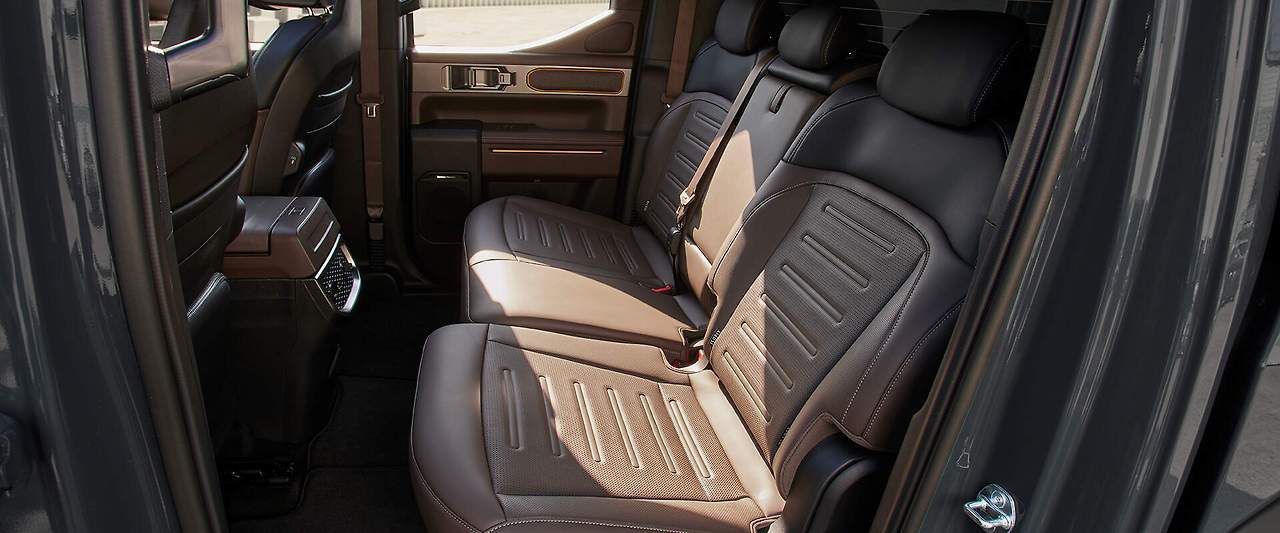 픽업트럭이지만 승용차 못지않은 실내 공간과 편의사양을 제공합니다. 고급스러운 소재와 첨단 디지털 클러스터, 대형 터치스크린이 적용되어 현대적이면서도 기능적인 실내를 완성했습니다.